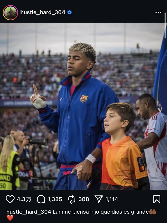 随后连着发了第二条帖子:“拉明,想想吧,孩子,上帝是伟大的。❤️”